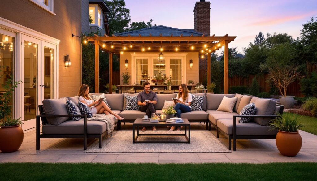 - Scale your furniture to fill 50-60% of your patio’s footprint, vary heights with different seating styles and vertical elements, and use lighting to define zones and extend usability into evenings.